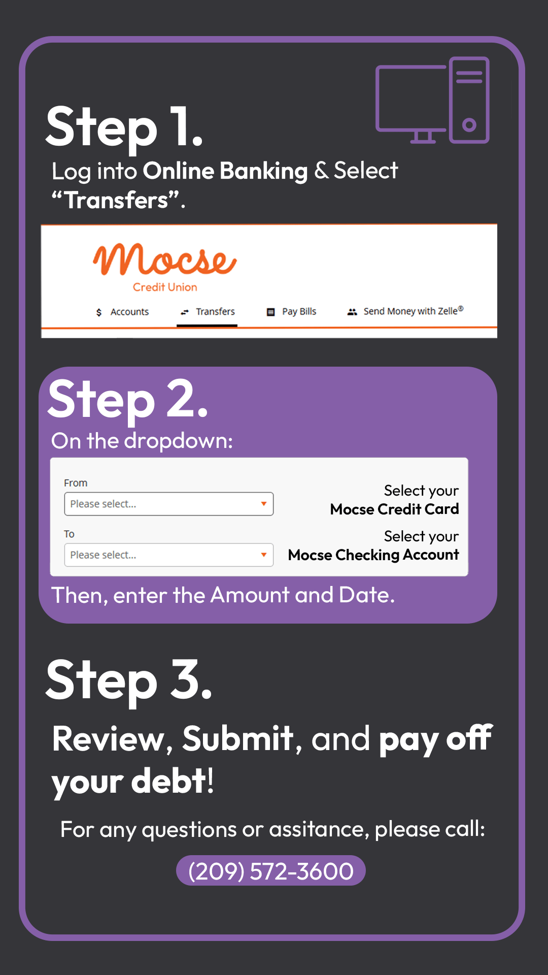 Learn HowLearn how to make a Credit Card Balance Transfer in seconds using our Online Banking service.